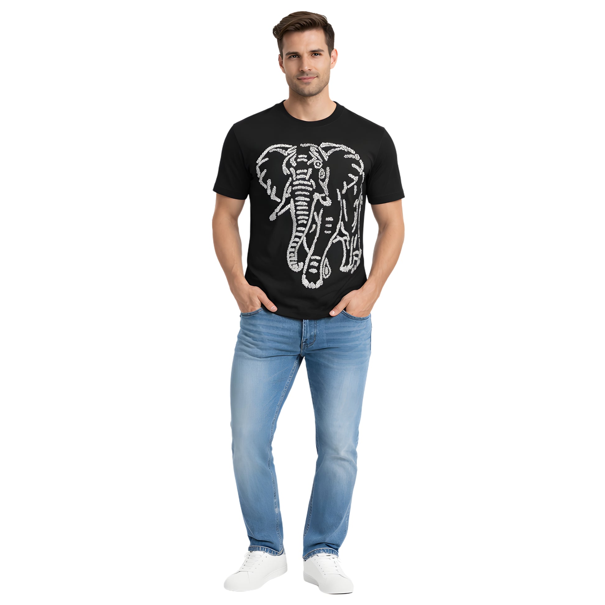 # Regal Trunk Elevate your wardrobe with this striking shirt featuring an intricate elephant design. The majestic motif captures the grace and strength of these magnificent creatures, rendered in meticulous detail across premium fabric. Perfect for those who appreciate bold, meaningful artwork paired with comfort. A versatile piece that transitions seamlessly from casual outings to curated styling moments. Wear with confidence and make a statement.